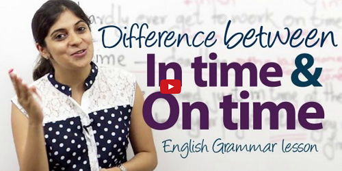 The phrases "in time" and "on time" are very similar in meaning, but English speakers use them in slightly different situations. In this lesson Niharika brings out the difference between the two time phrases: